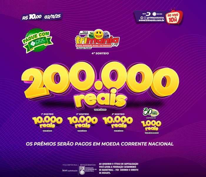 Ao comprar seu título e ceder o direito de resgate, você apoia a Federação Catarinense de Basketball e centenas de projetos sociais. Com o Trimania Sul, a FCB transforma esperança em ação oferecendo prêmios incríveis e promovendo o esporte por meio da FCB Social, filiada à Confederação Brasileira de Basketball (CBB).